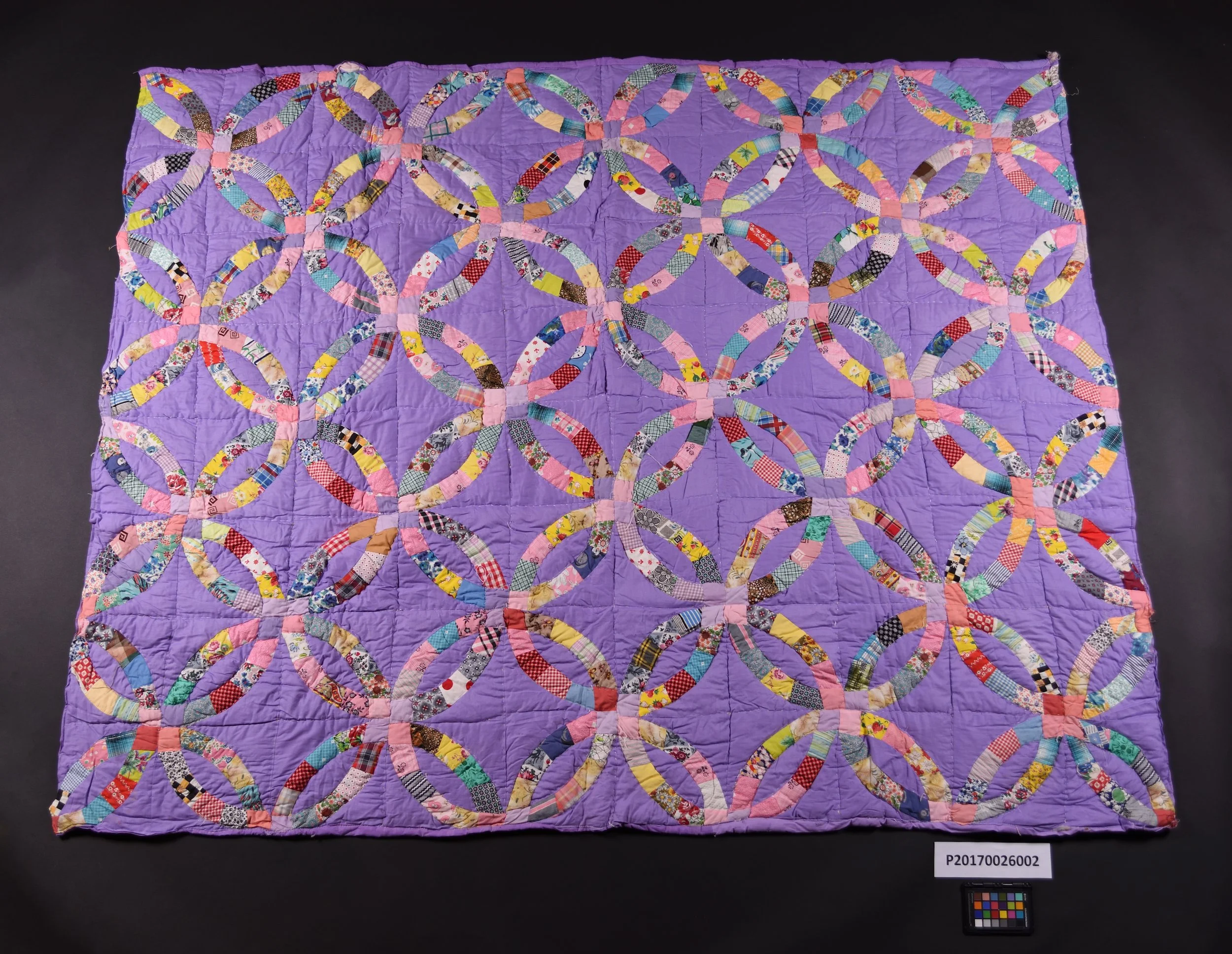 Purple Quilt with Double Wedding Ring Pattern - Front
