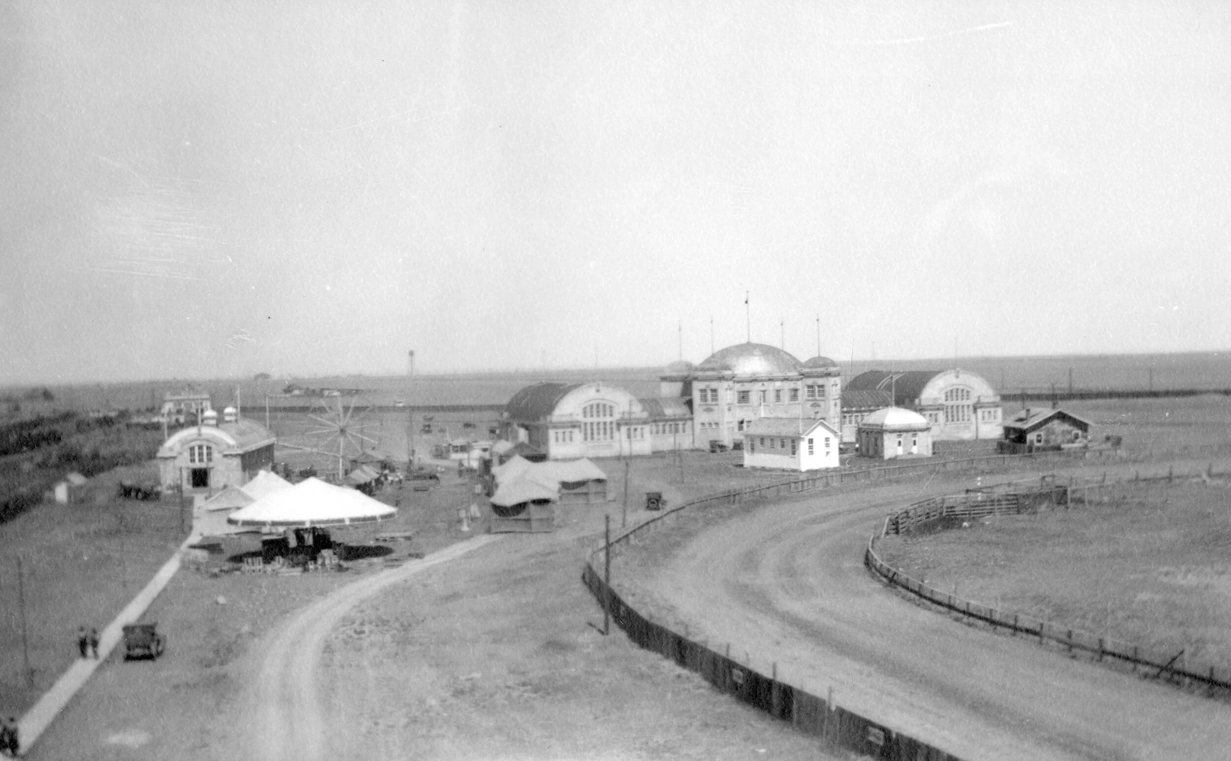 A distant view of the Lethbridge Exhibition buildings.