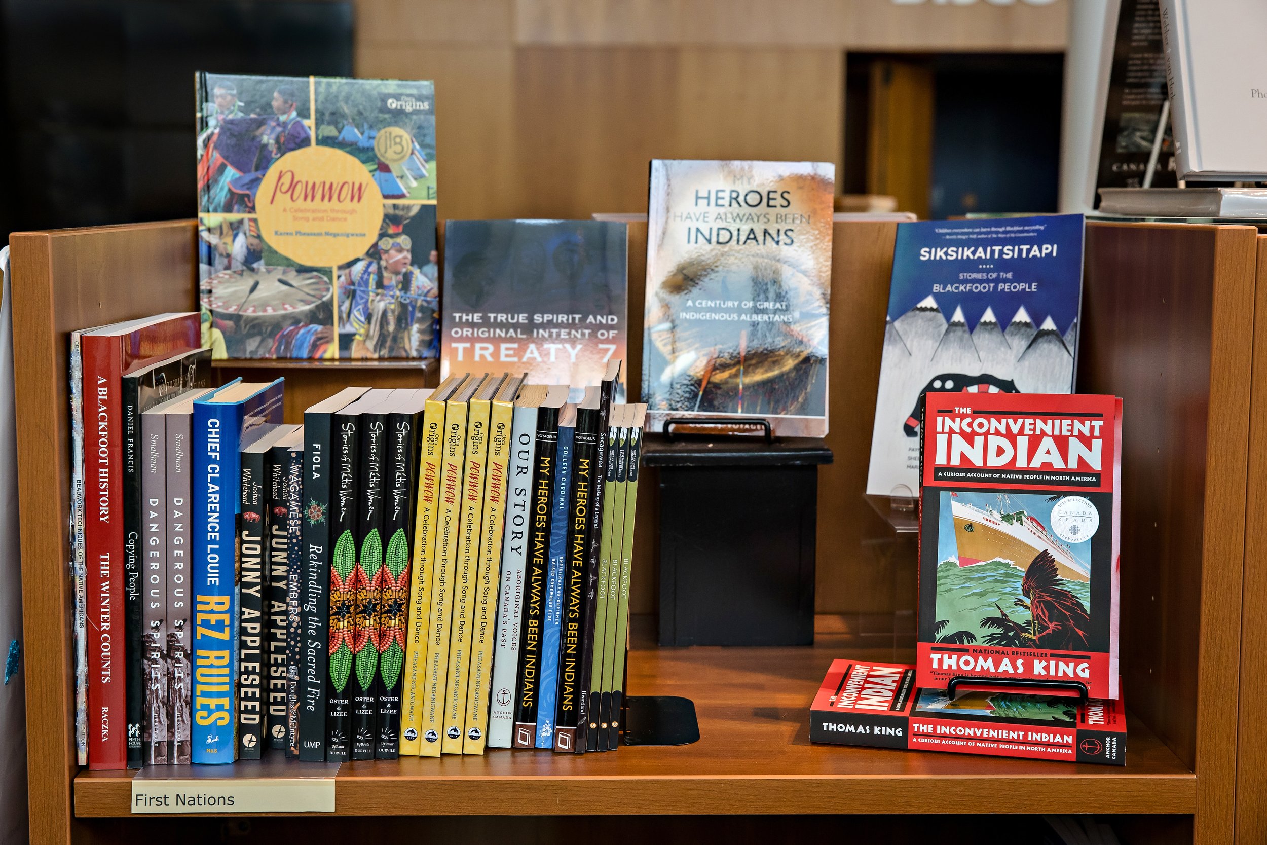 Indigenous book stand in the Galt Museum & Archives Gift Shop