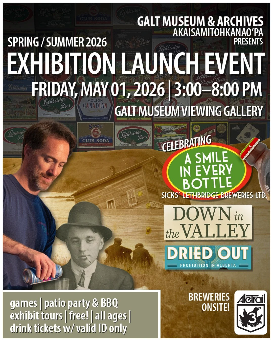 A Smile in Every Bottle: Sicks’ Breweries Ltd celebrates the 100th anniversary of Old Style Pilsner (first brewed here in 1926) and shows how Lethbridge’s family-run brewery became a global leader in beer production and distribution. Dried Out: Prohibition in Alberta examines how the moral and political crusade to ban alcohol had unintended consequences, both good and bad. Down in the Valley demonstrates how the Oldman River is vital for life on the prairies. How has the Oldman River landscape changed throughout human history?