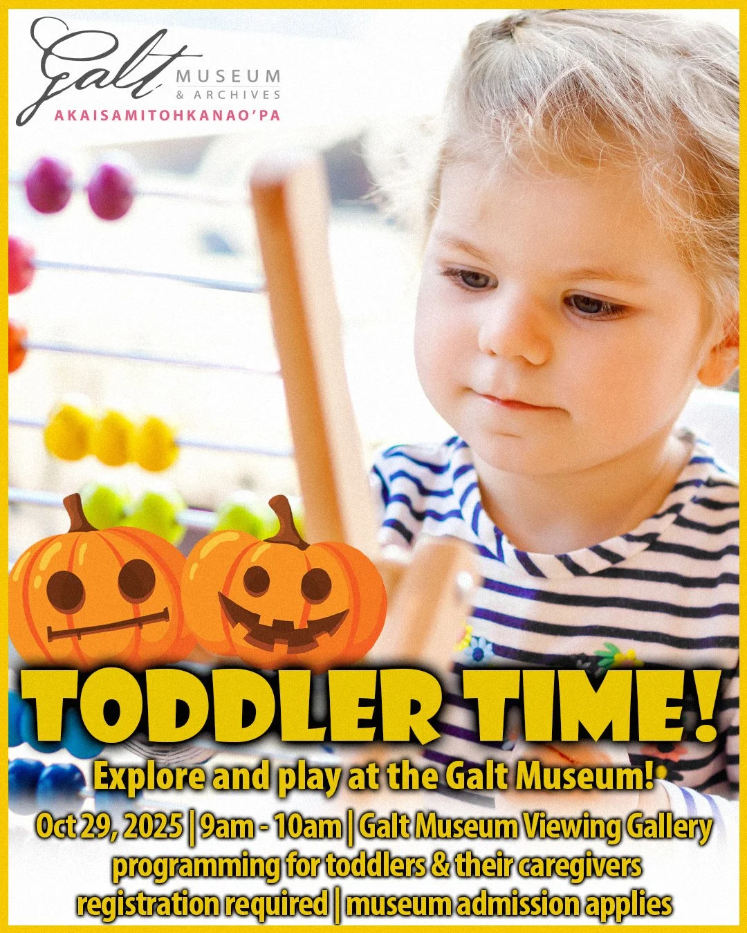 Halloween is here! Dress yourself and your toddler and small children up and come visit us for an interactive morning at the Galt Museum & Archives. A fun-filled morning with toys, activities, book reading, and a private toddler time in the museum to explore the current exhibition.