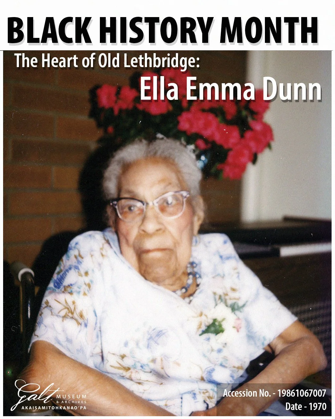 Ella Emma Dunn was born in Des Moines, Iowa, and spent her early adult years working at the local Lucky Strike cigarette factory. After leaving the United States, she traveled to Vancouver, British Columbia, where she worked as a nanny for a doctor’s family before eventually settling in Lethbridge.